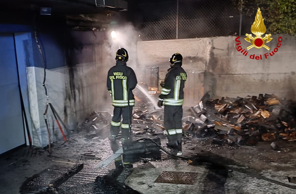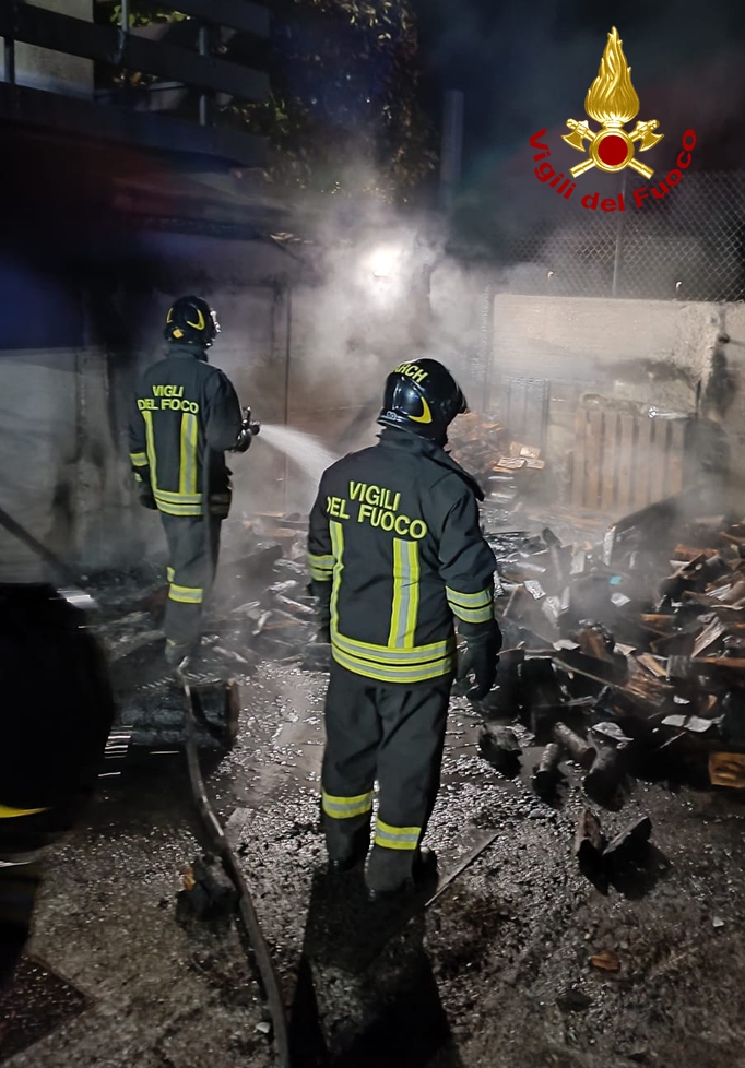 All'arrivo dei VV.F. le fiamme si erano già propagate dalla tettoia al terrazzo sovrastante e stavano lambendo le travature in legno dell'abitazione accostata alla legnaia in fiamme.