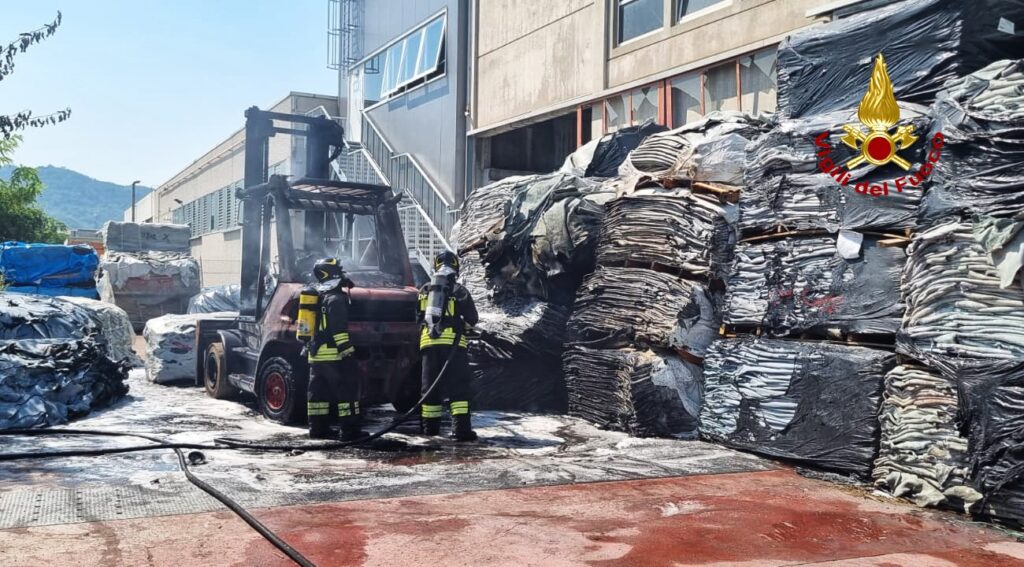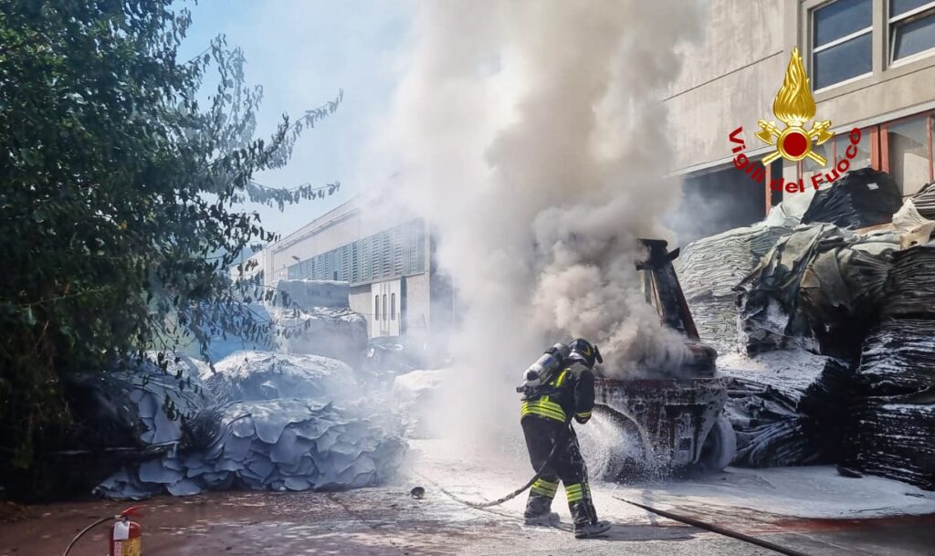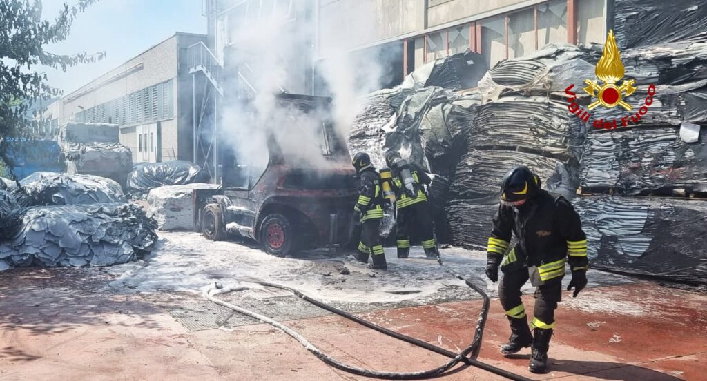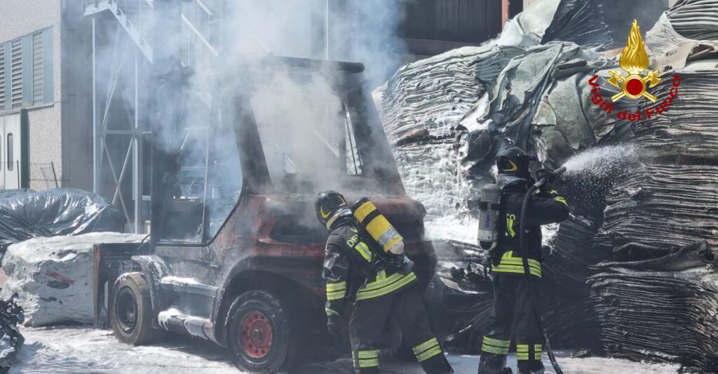 Paura in una conceria: muletto avvolto dalle fiamme, operatore in salvo