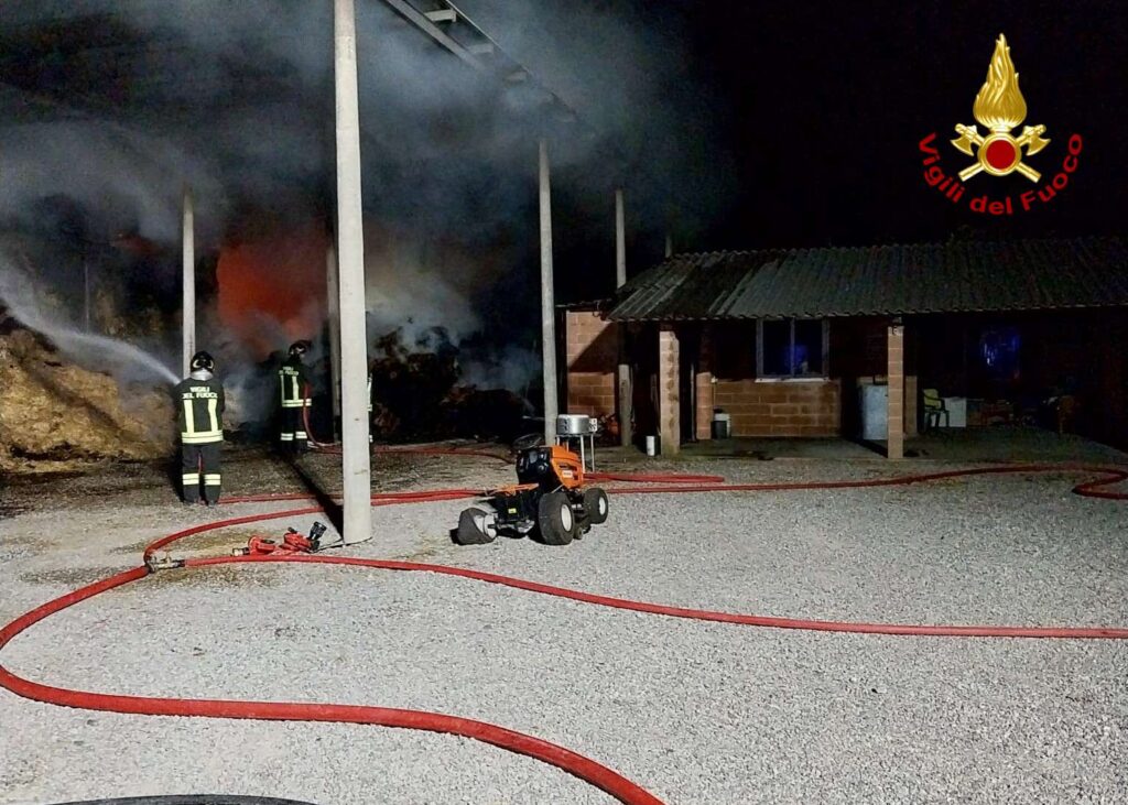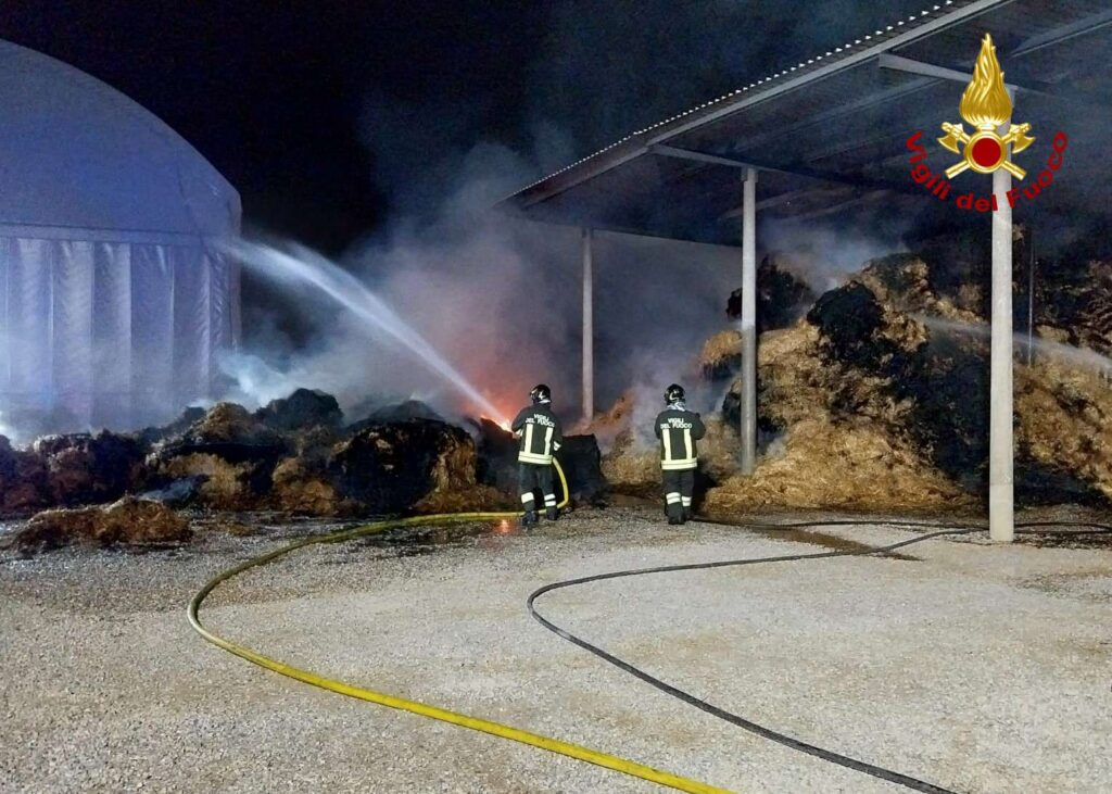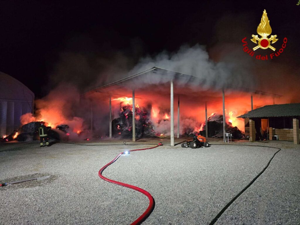 Gruaro, incendio devastante nell'azienda agricola: in fiamme 700 quintali di balle di fieno