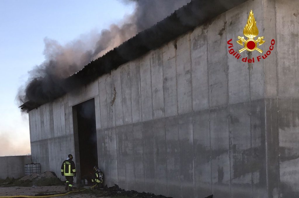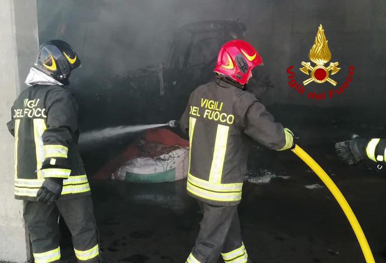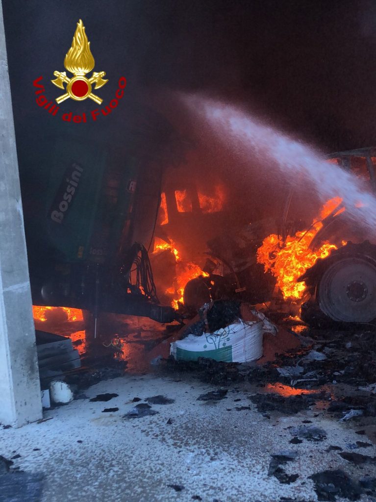 Incendio devasta un capannone, bruciano trattori e rimorchi agricoli