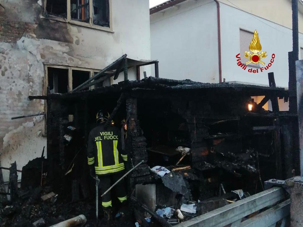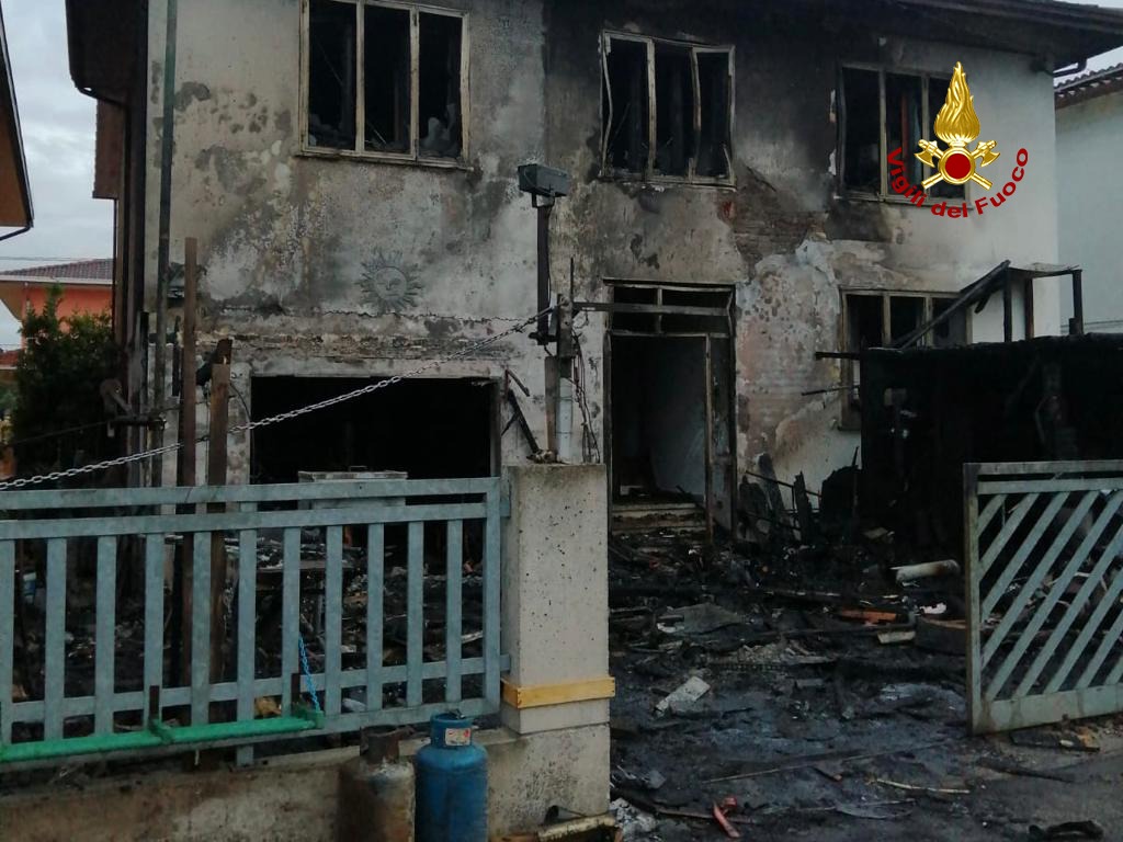 Le fiamme hanno interessato un deposito di materiale all’esterno posto sotto una tettoia, la facciata dell’abitazione, gli infissi, un locale box al piano terra, danni da fumo all’interno di tutta l’abitazione.