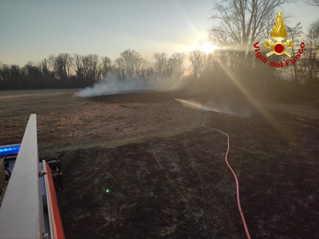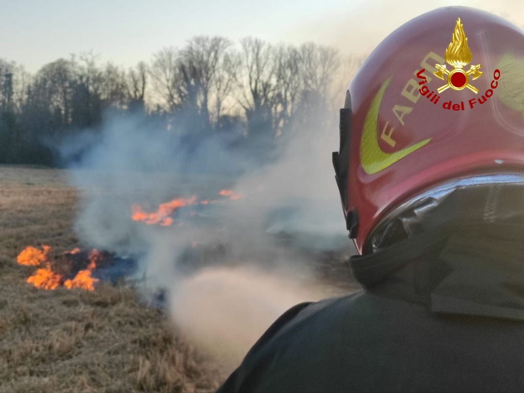 Incendio di sterpaglie nel parco delle Risorgive di Codroipo