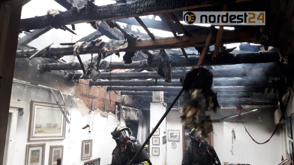 Per evitare la propagazione del fuoco si e' proceduto al taglio delle travature in legno impendeno cosi' che le fiamme raggiungessero il tetto contiguo, in quanto il fabbricato e' realizzato con coperture sfalsate.