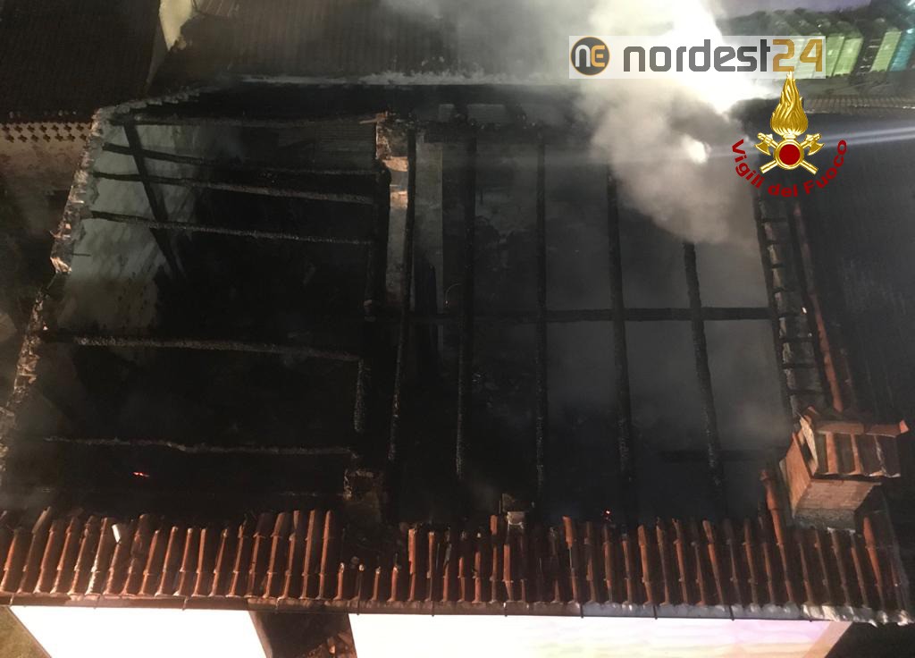 Bruciata tutta la struttura di due piani con il collassamento del tetto.