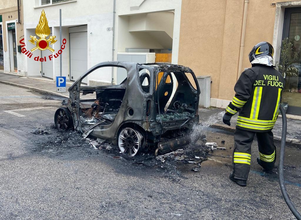 I pompieri arrivati con la prima squadra, hanno spento le fiamme della piccola auto andata completamente distrutta. Le cause sono al vaglio della squadra intervenuta.
