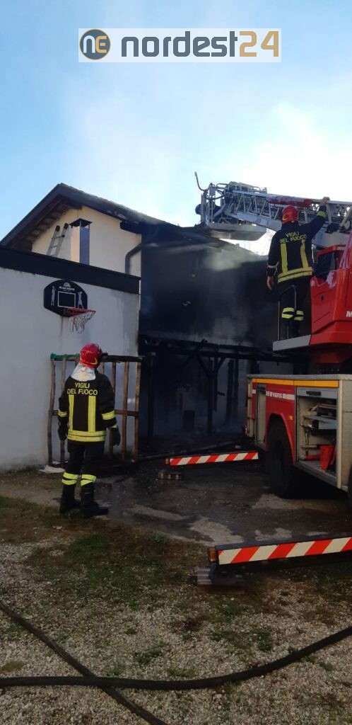 E' andato a fuoco un deposito di legna da ardere che era collocato sotto una tettoia, successivamente le fiamme hanno raggiunto anche la copertura in legno che è andata parzialmente distrutta.
