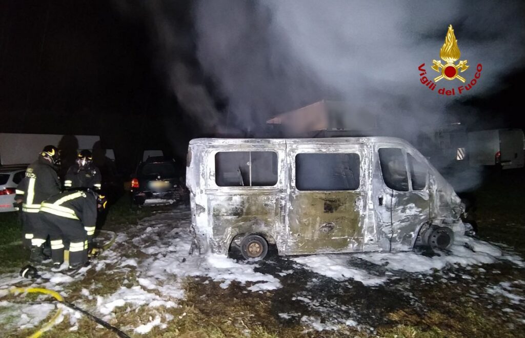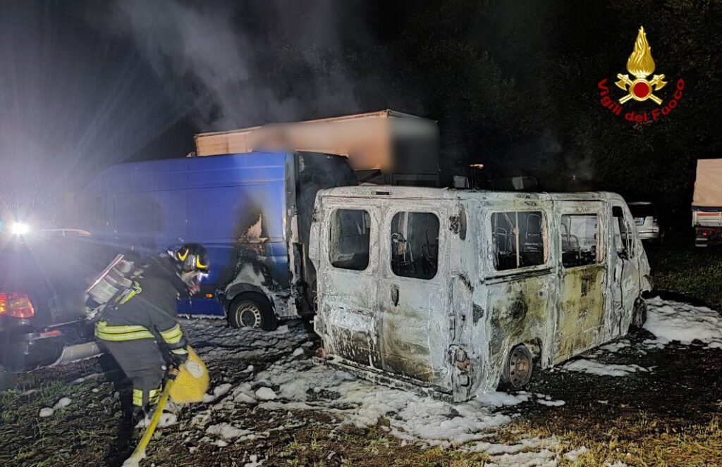 Furgone in fiamme nella notte, il rogo si estende a diversi altri mezzi