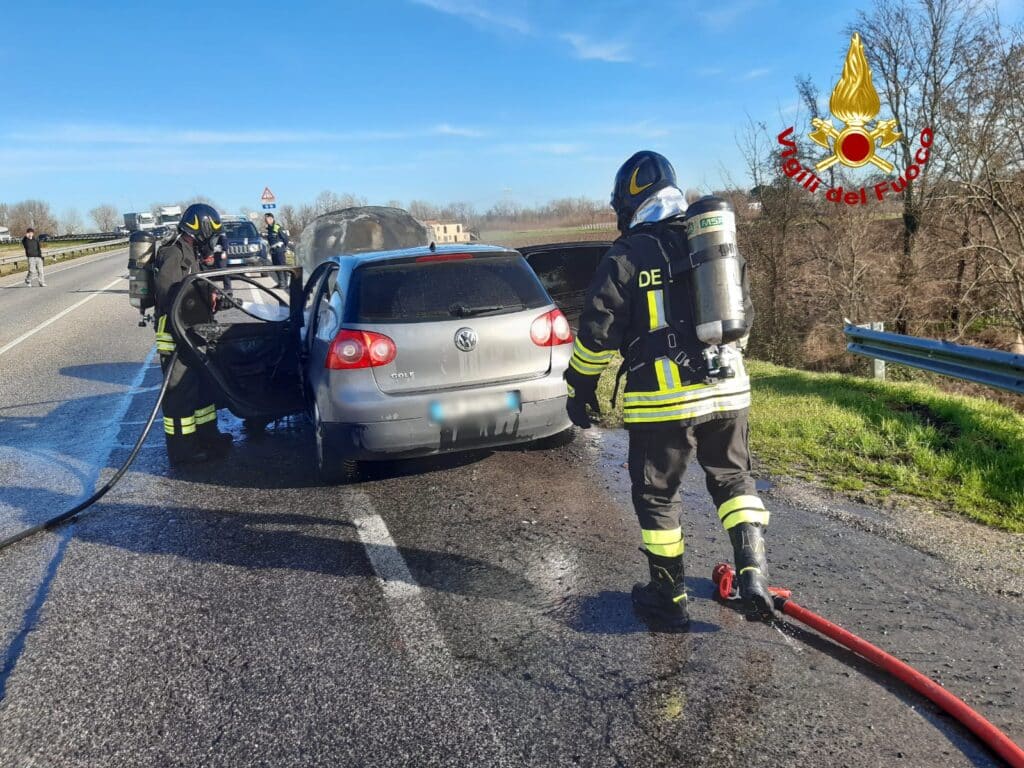 PONTE DI PIAVE (TREVISO). Poco prima delle 14:00, di giovedì 30 gennaio, i vigili del fuoco sono intervenuti lungo la SR53 in Via Postumia a Ponte di Piave per l’incendio di un’auto: nessuna persona è rimasta ferita.
