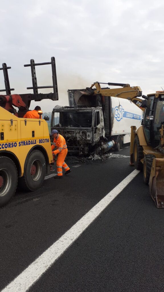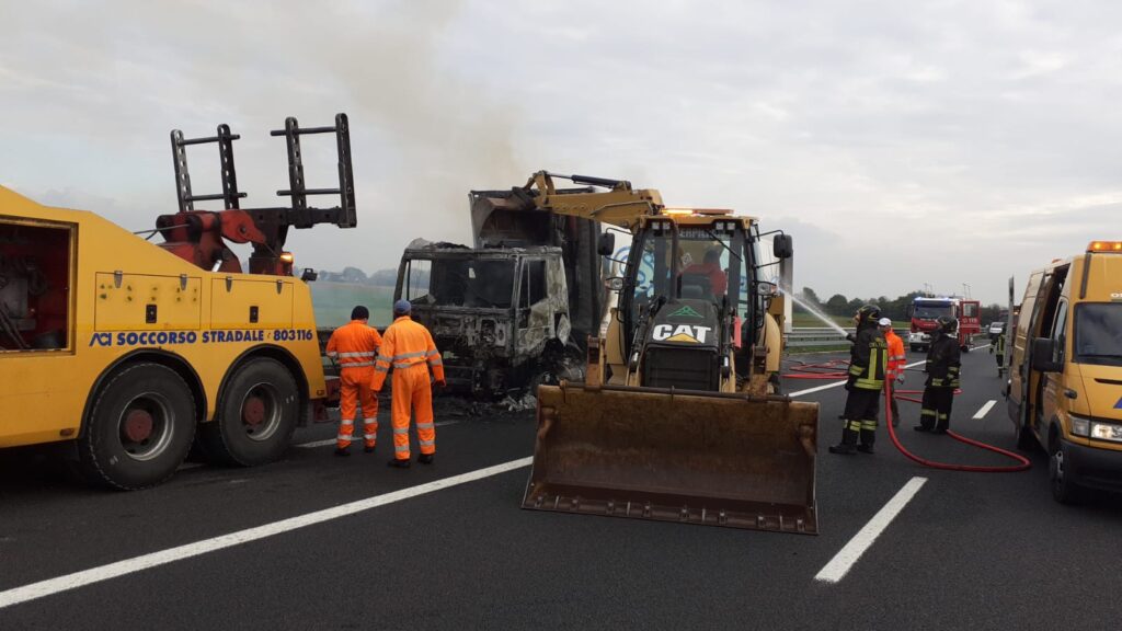 Il personale di Autovie Venete, la polizia stradale, i vigili del fuoco e i mezzi di soccorso meccanico sono all’opera per completare il complesso intervento di rimozione di un mezzo pesante che nella tarda mattinata di oggi ha preso fuoco nel tratto autostradale della A23 tra il Nodo di Palmanova e Udine Sud (direzione Tarvisio) al chilometro 4 + 500.