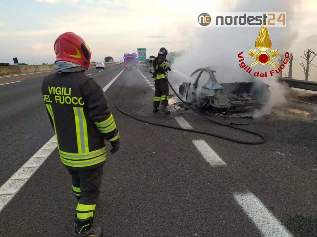 Incendio in Autostrada: Bmw 520 avvolta dalle fiamme, distrutta