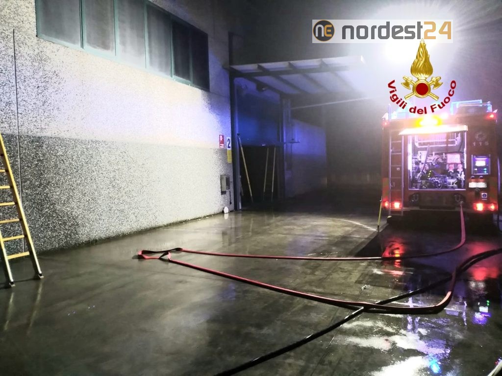 Le fiamme hanno bruciato dei macchinari imballatrici, un computer e danneggiato delle scaffalature, oltre a danni da fumo in tutto il capannone.