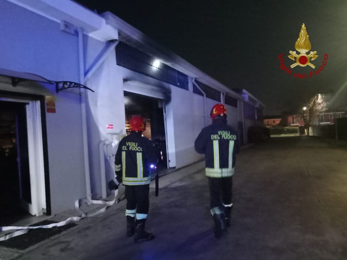 Incendio in un laboratorio tessile a San Martino di Venezze: intervento dei Vigili del Fuoco, operazioni proseguite fino a tarda notte.