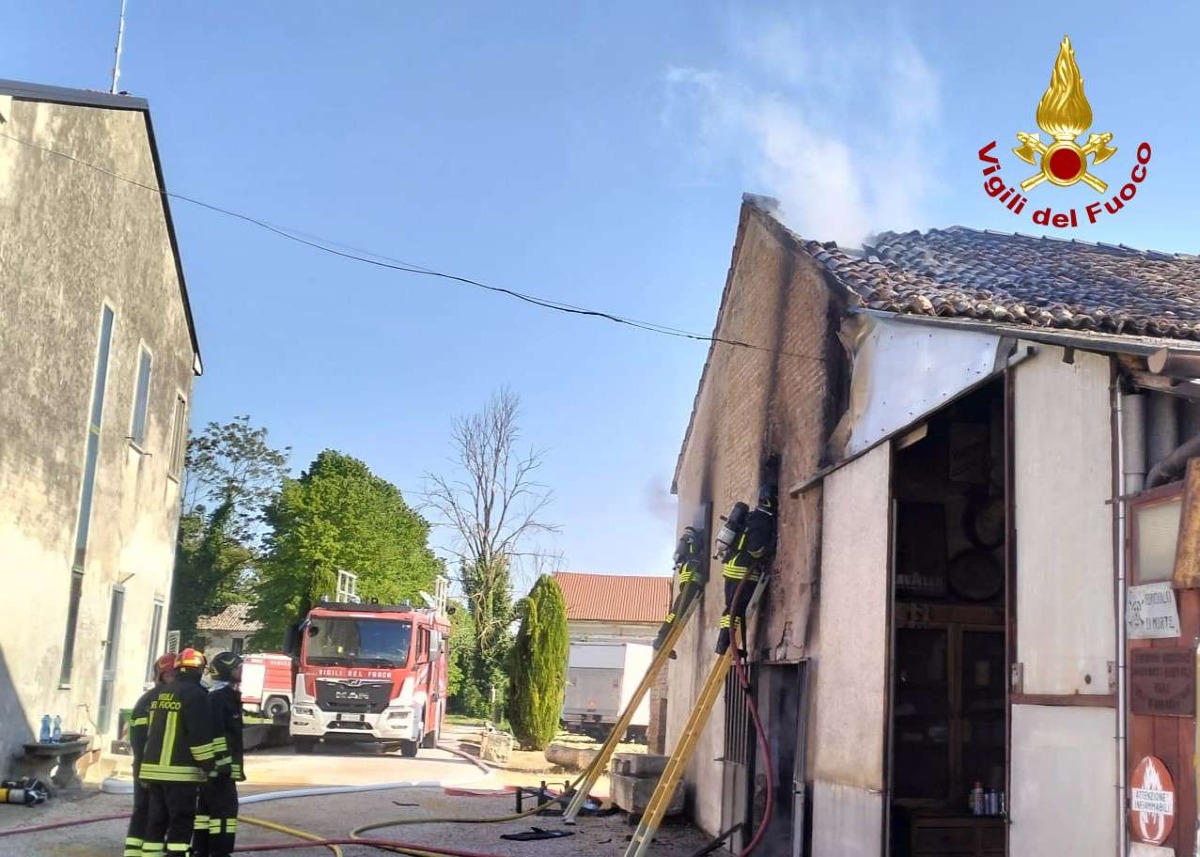 Incendio in un magazzino agricolo a Rovigo: Vigili del fuoco al lavoro, fiamme sotto controllo e nessun ferito.