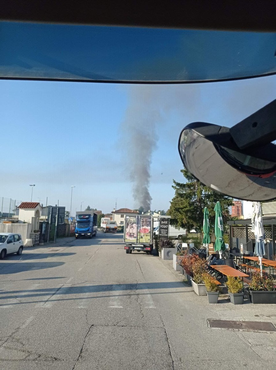 Incendio in un capannone in Friuli: densa colonna di fumo visibile a distanza