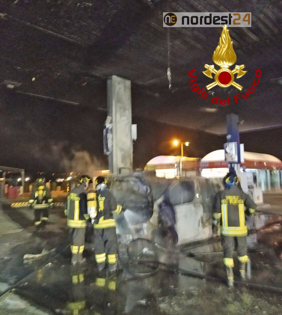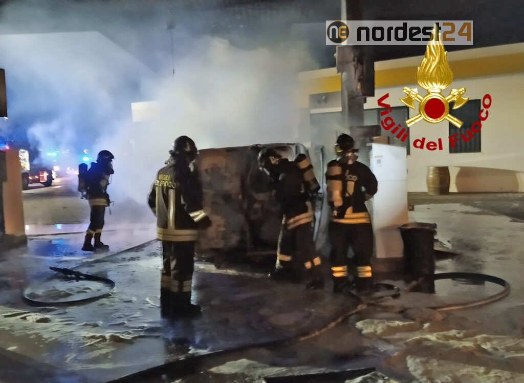 I pompieri arrivati da Vicenza e Arzignano con due autopompe, due autobotti e 12 operatori, hanno circoscritto e spento le fiamme, che hanno bruciato un furgone, la pensilina, una colonnina di distribuzione e danneggiata un’altra.