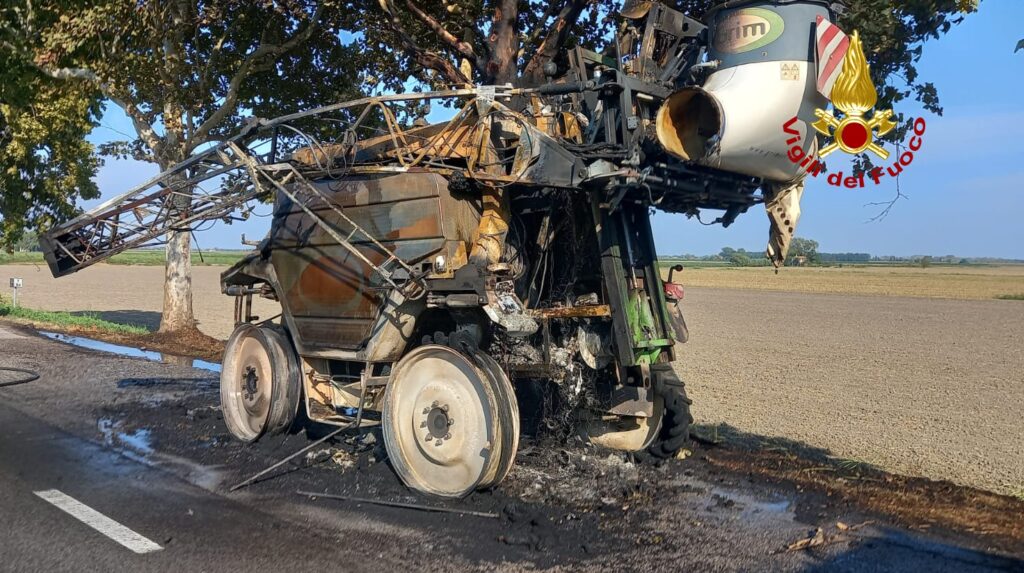 MEOLO (VE). Alle 15:40 di oggi, giovedì 29 agosto, un incidente ha coinvolto un atomizzatore agricolo lungo la Strada Triestina a Meolo. I vigili del fuoco, giunti prontamente da San Donà e Mestre, hanno domato le fiamme che avevano avvolto il macchinario.