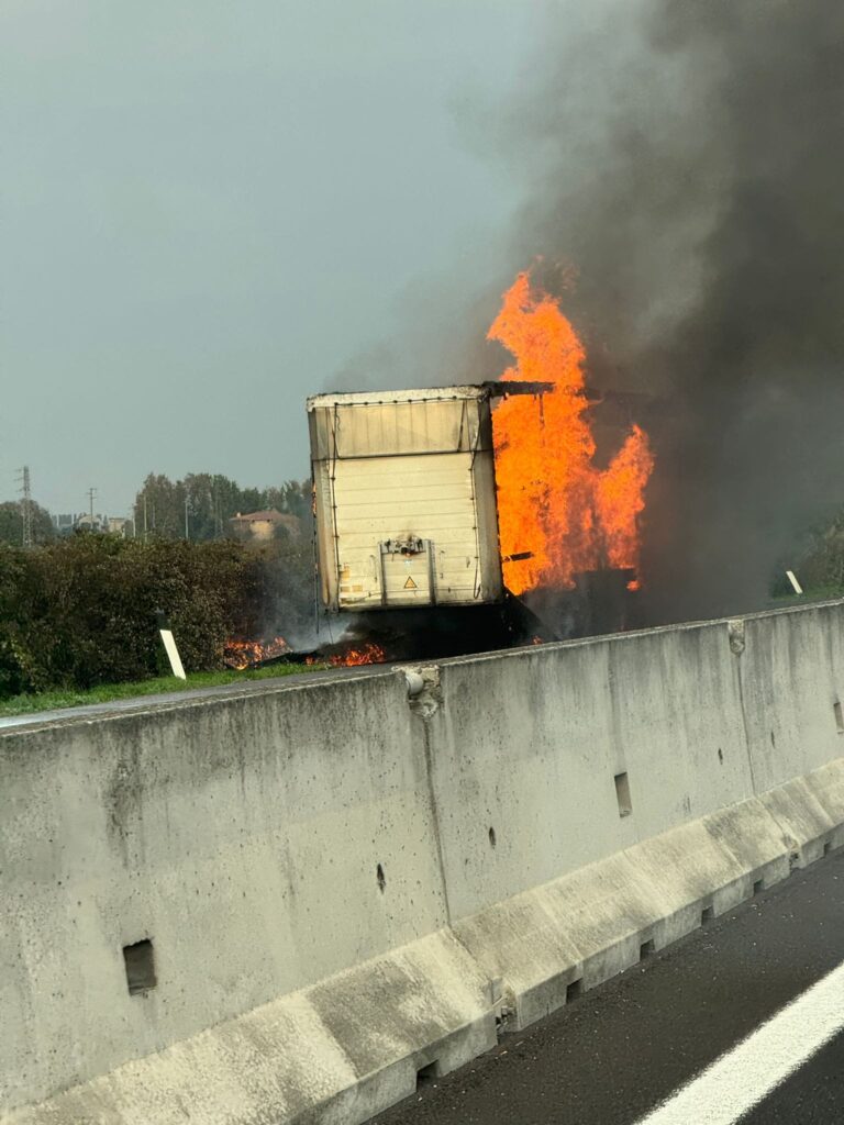 Mezzo pesante in fiamme sull'A4: traffico bloccato tra Cessalto e San Donà. Svincoli chiusi