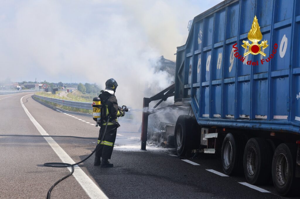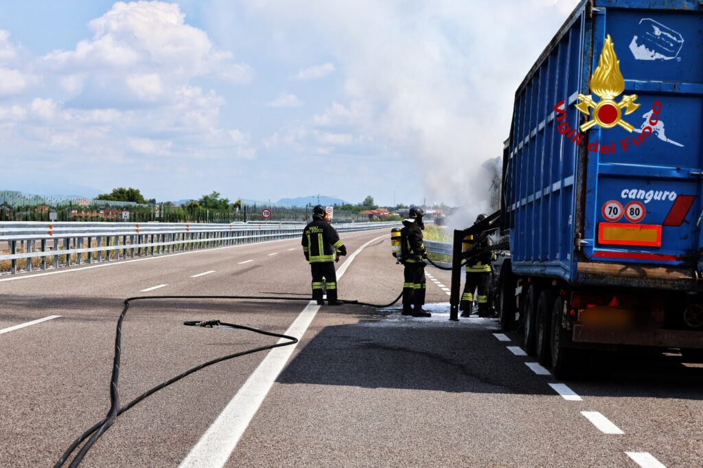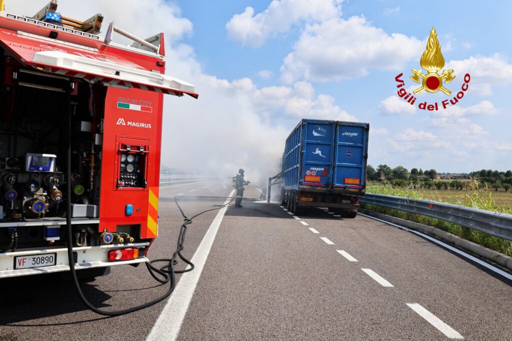 Alle 11:45, di venerdì, i vigili del fuoco sono intervenuti lungo la superstrada Pedemontana Veneta tra gli svincoli di Breganze e Colceresa in direzione Treviso per l’incendio della motrice di un autoarticolato: nessuna persona è rimasta ferita.