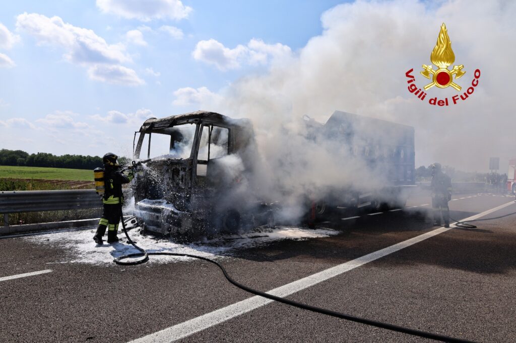 L’autista alla guida del camion si è accorto che qualcosa non andava, ha accostato ed è sceso dal mezzo per controllare, quando ha visto divampare le fiamme.