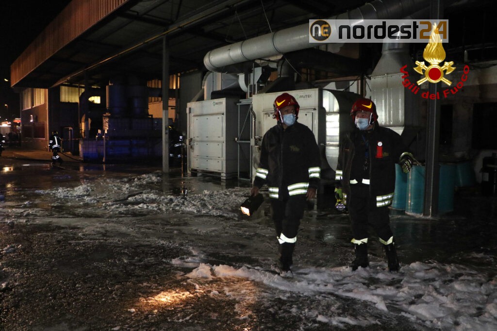 I pompieri arrivati da Vicenza e dal distaccamento volontario di Thiene con 2 autopompe, 2 autobotti, un'autoscala e 16 operatori, sono riusciti a circoscrivere e spegnere le fiamme, contenendole al capannone di mezzo, evitando il coinvolgimento delle altre due attività confinanti.