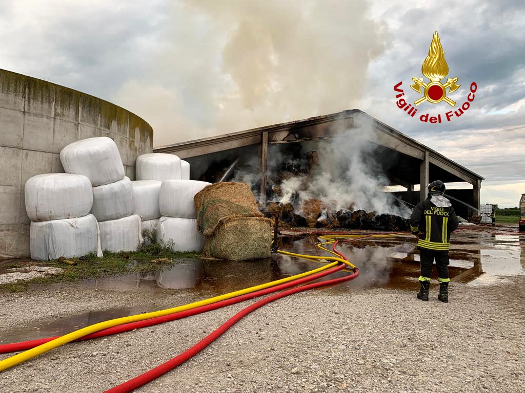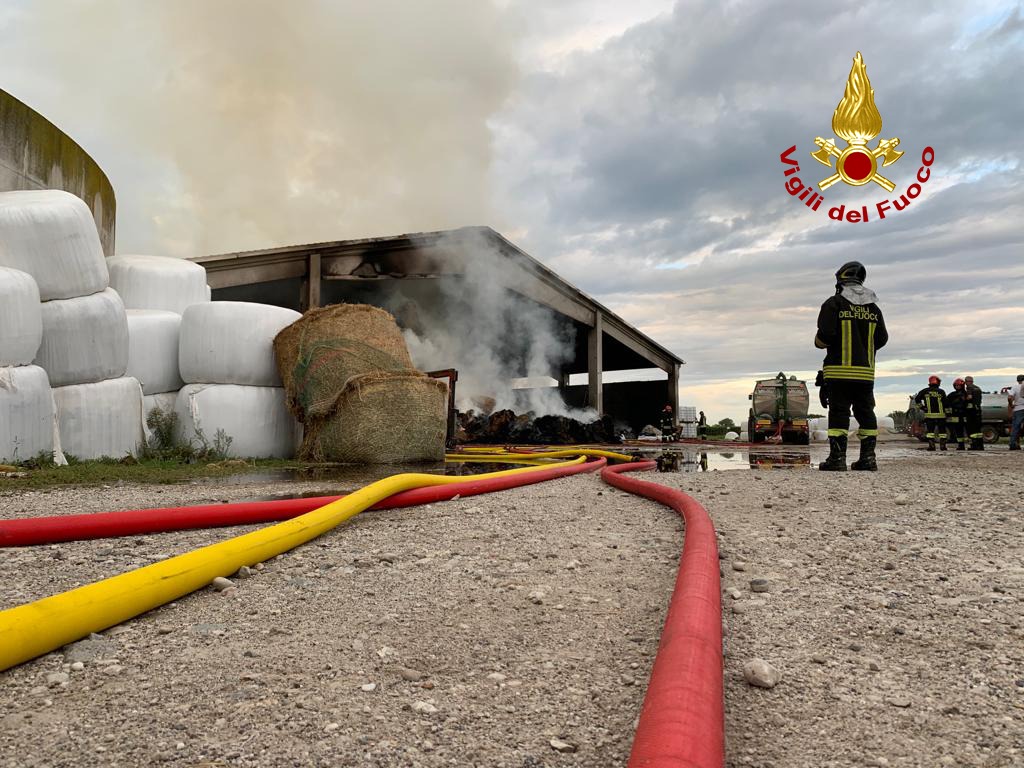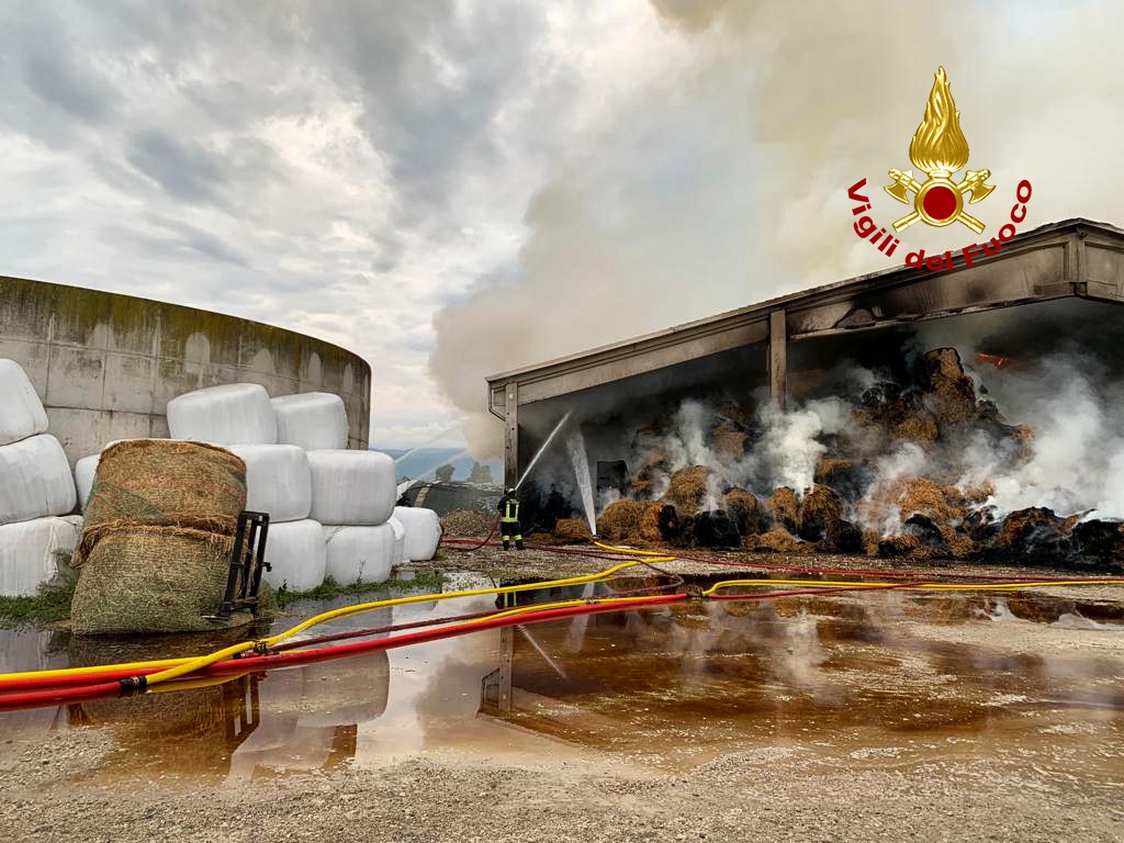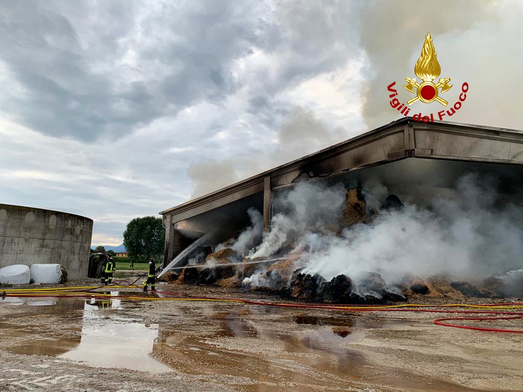 Le fiamme sono divampate per cause in corso di accertamento all’interno di un deposito contenente oltre 2500 rotoballe di fieno per oltre 10.000 quintali di foraggio.