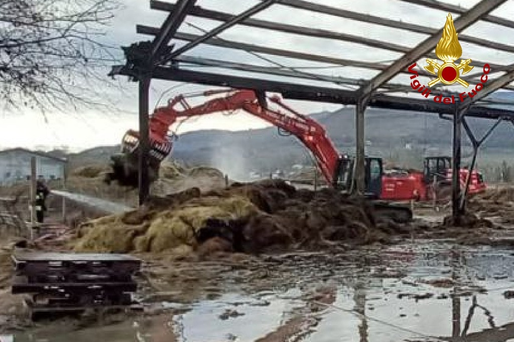 L’allarme era scattato nel tardo pomeriggio di ieri, 7 febbraio, quando intorno alle 17.30 le prime squadre sono intervenute sul posto per fronteggiare un rogo di vaste proporzioni, alimentato dal materiale agricolo stoccato nella struttura.