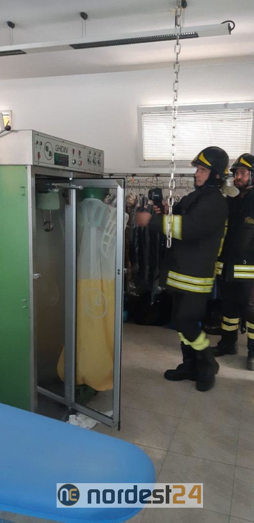 Il principio di incendio ha interessato un'apparecchiatura per il trattamento di capi di abbigliamento chiamata "sfumatrice cabinet".