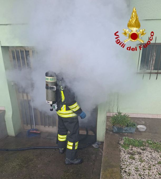 Montagnana, incendio in un seminterrato di via Ranforlina: nessun ferito e danni contenuti dai vigili del fuoco.