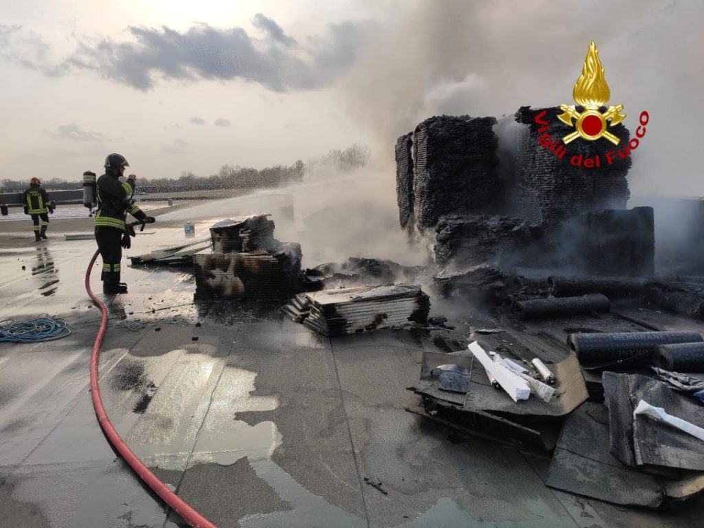 L'incendio ha interessato del materiale isolante depositato sulla copertura, che per cause accidentali è stato innescato durante le fasi di lavorazione del rifacimento della stessa.