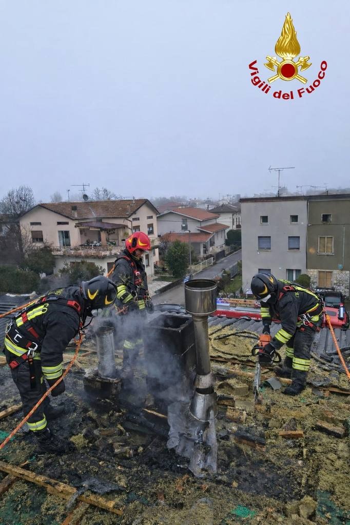 Incendio al tetto di una casa a San Vito di Leguzzano: vigili del fuoco in azione, fiamme domate e nessun ferito.