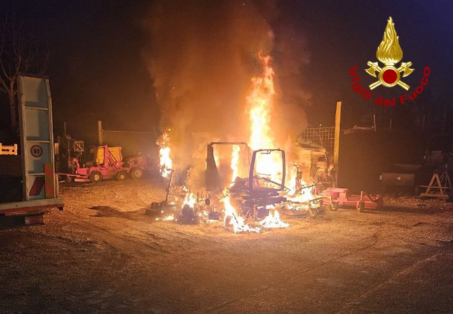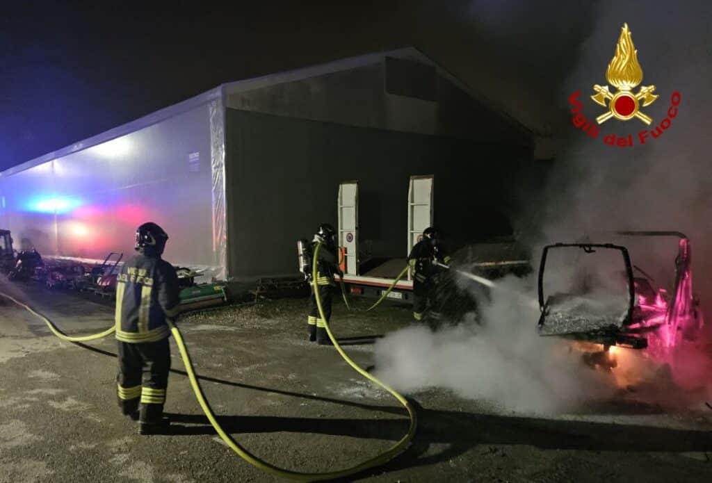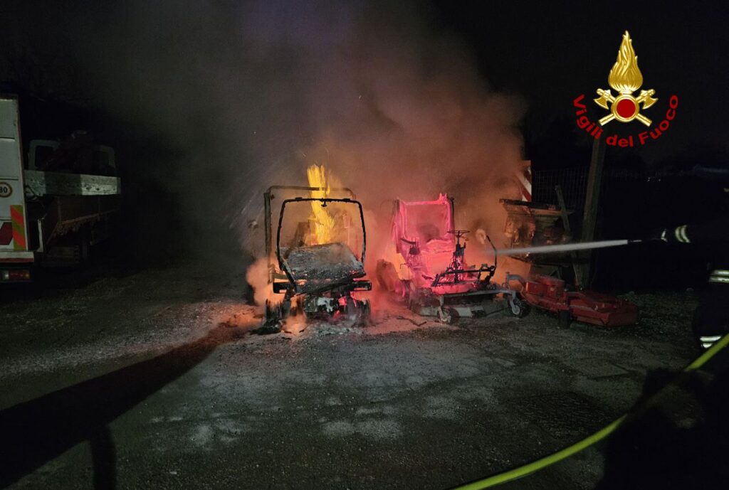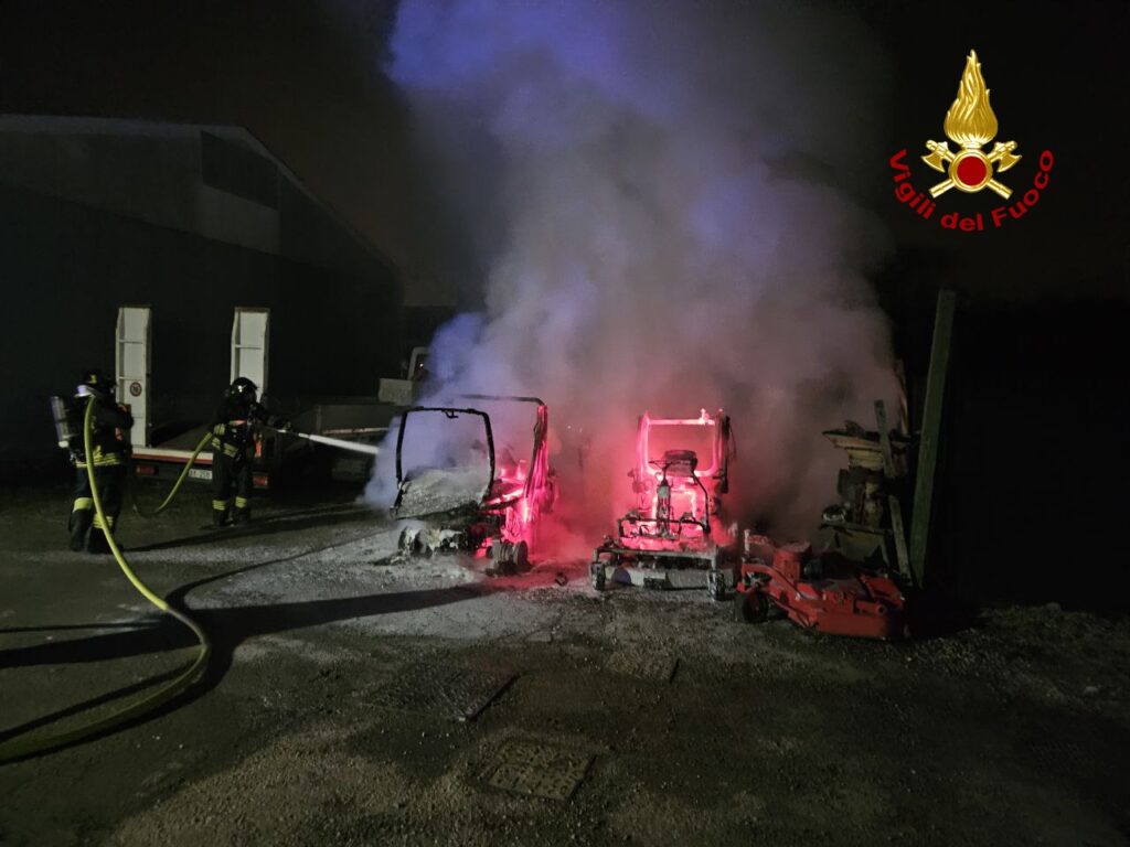 Incendio a San Biagio di Callalta il 25 gennaio: trattorini rasaerba distrutti. Nessun ferito, ma intervento tempestivo dei vigili del fuoco.