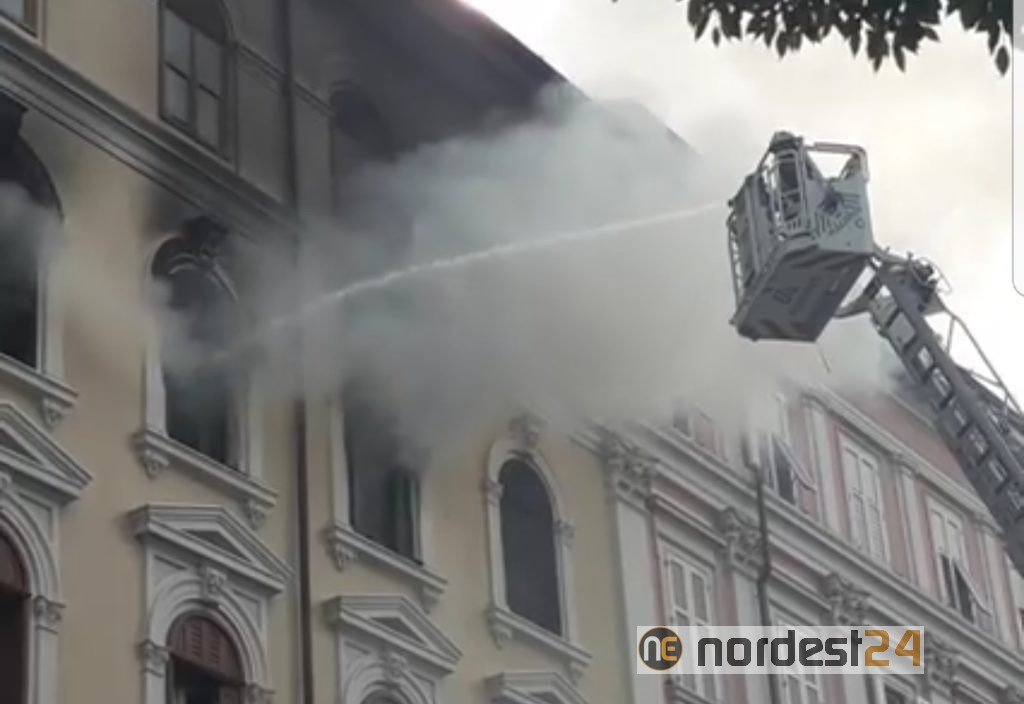 Le fiamme escono da due finestre al terzo piano, più o meno all'altezza del bar Condor poco dopo la stazione dei treni.