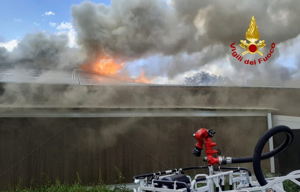 Fiamme alte dai pannelli fotovoltaici dell'allevamento: morte decine di migliaia di galline