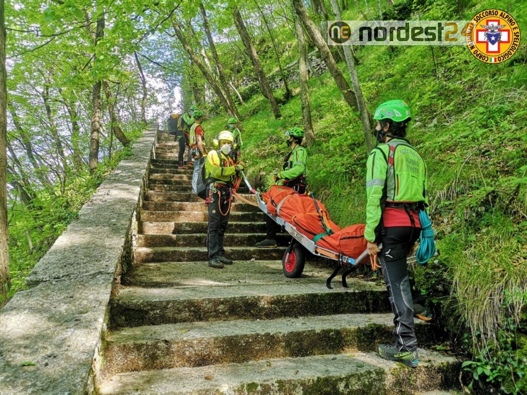 Risaliti al luogo dell'incidente, a pochi minuti a piedi dal Santuario, sul posto sono stati verricellati medico e tecnico di elisoccorso, sopraggiunti con l'elicottero di Verona emergenza, che hanno solamente potuto constatare il decesso dell'uomo, R.L., 67 anni, di Rovigo, che, dopo essere inciampato era caduto per 25 metri da un salto di roccia e poi ruzzolato nel bosco.