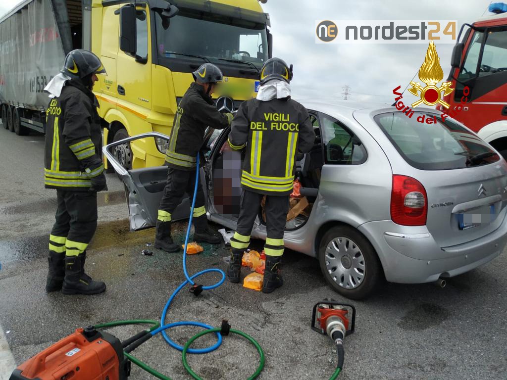 La squadra dei pompieri arrivata dal distaccamento di Piove di Sacco, ha messo in sicurezza i mezzi ed utilizzando cesoie, divaricatori e martinetti idraulici estratto il conducente, rimasto incastrato nell’abitacolo deformato.