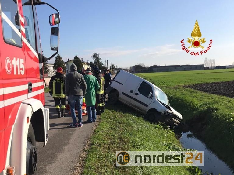 Incidente a Merlara, perde il controllo del mezzo e finisce nel fossato: un ferito