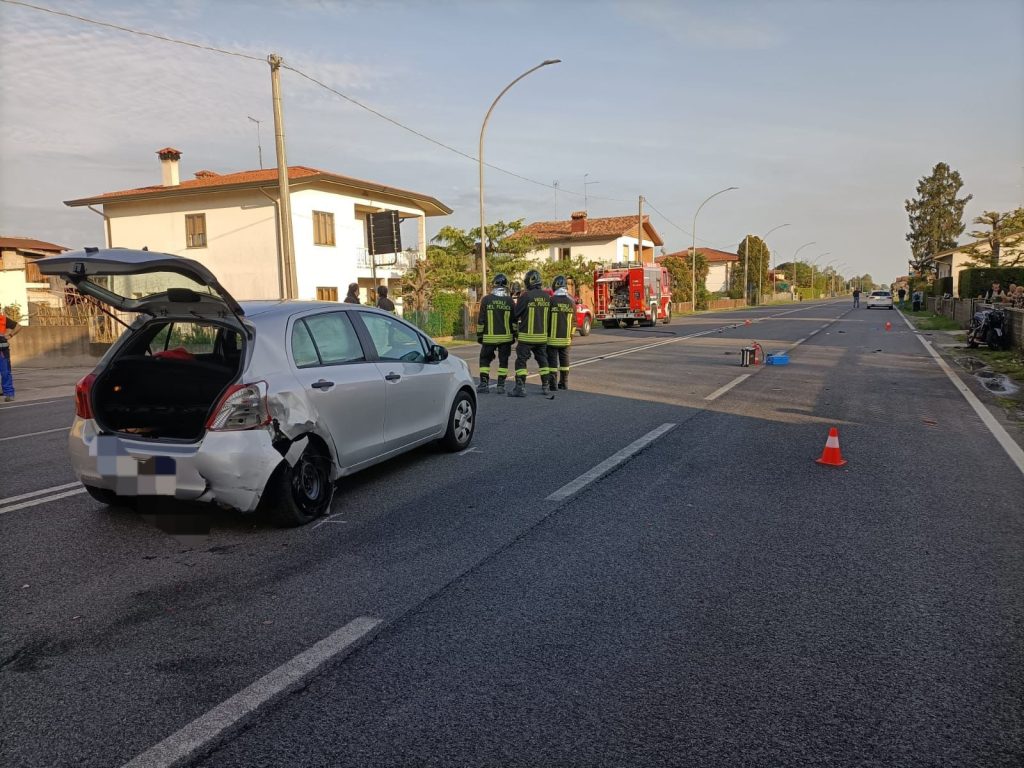 Per cause in corso di accertamento una moto Yamaha ed un'auto Toyota Yaris si sono scontrate: il centauro 23enne, Tommaso Del Sal di Pertegada, sbalzato dalla sella, ha riportato traumi gravi.
