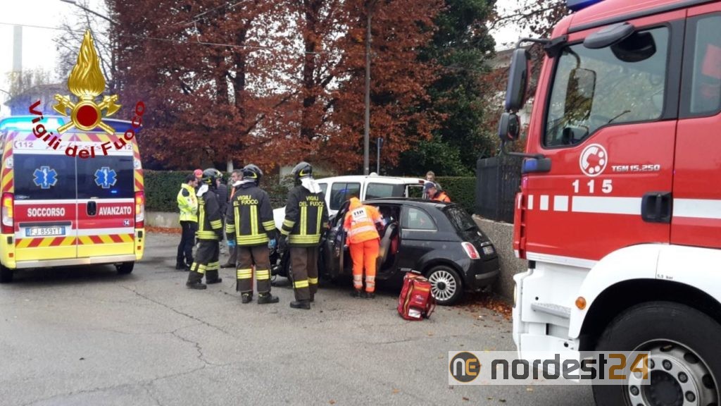 PORDENONE. I Vigili del Fuoco di Pordenone, con la prima squadra, sono intervenuti per un incidente stradale in Via Amendola all'incrocio con Via Rosselli a Pordenone, di fronte al parcheggio del Palazzetto dello Sport "M. Crisafulli" tra un Fiorino guidato da C.P. e una 500 guidata da P.C. entrambi di nazionalità italiana.