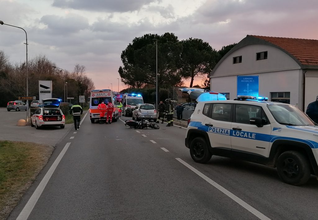 Alle ore 17:20 circa, lungo la SR353 "della bassa friulana", in comune di Pozzuolo, poco dopo l'incrocio con Via Genova, un motociclo e una autovettura sono entrate in collisione. Immediatamente è giunta la richiesta di soccorso al 112, che ha inviato sul posto personale del 118 con automedica e ambulanza, una squadra dei Vigili del Fuoco di Udine e la Polizia Locale del Comando Intercomunale di Campoformido e Pozzuolo del Friuli.