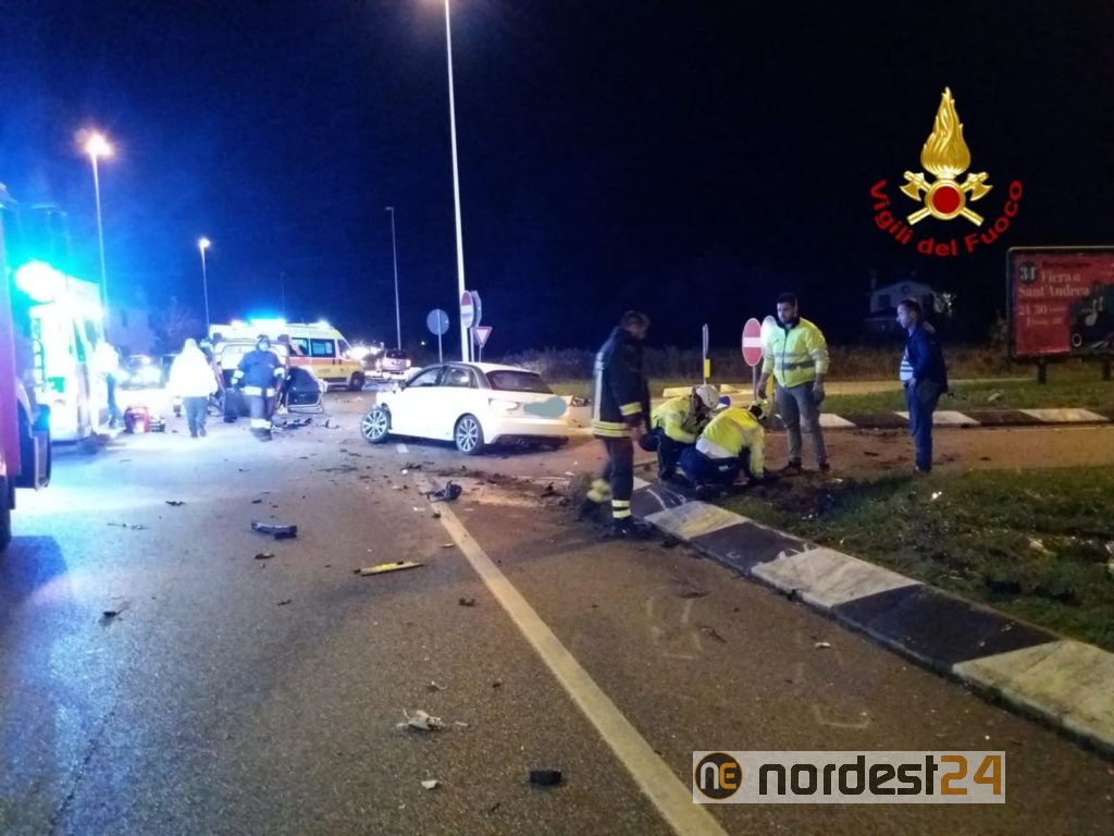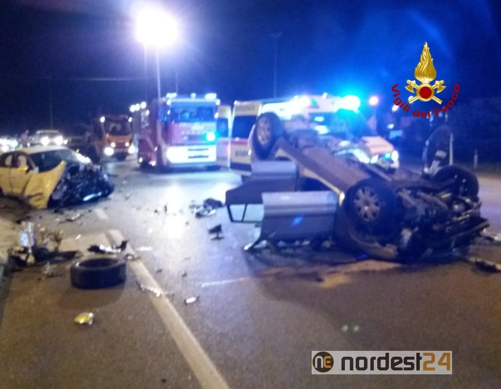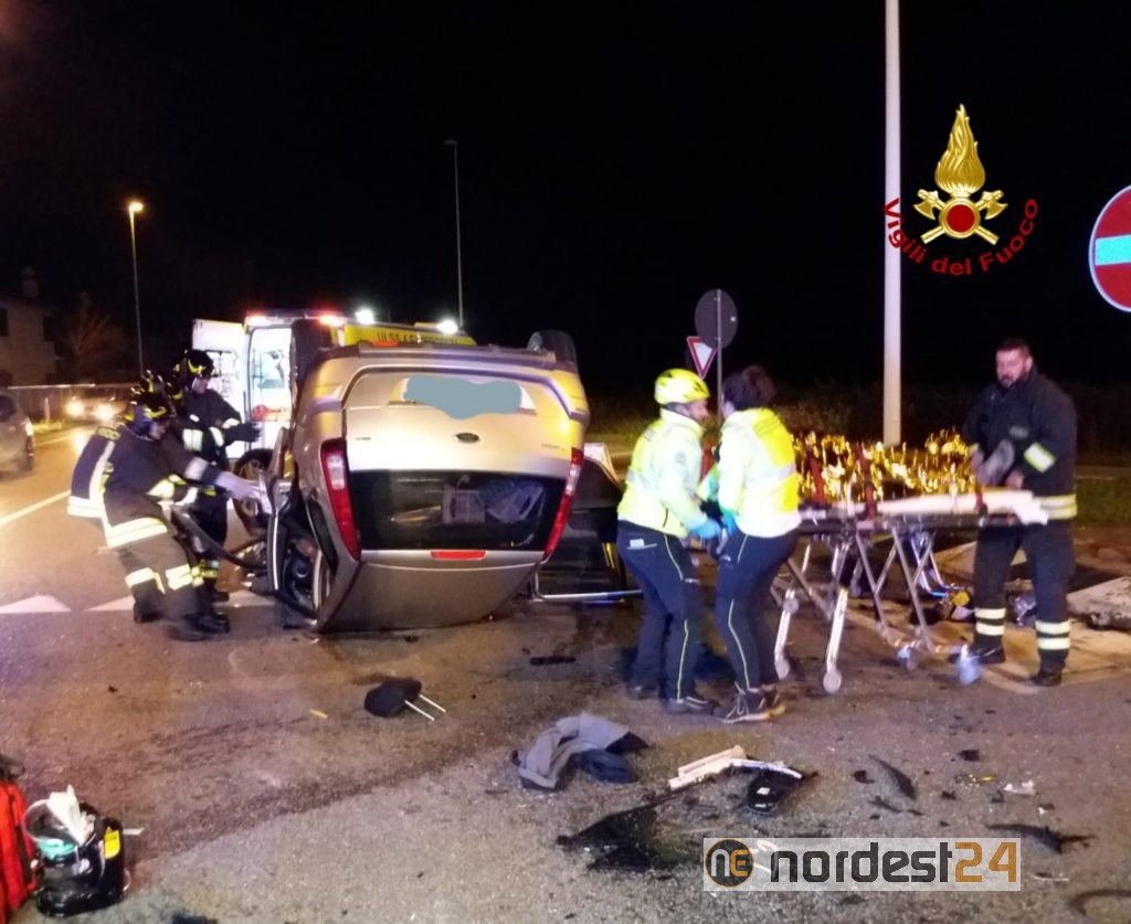 L’altro occupante dell’auto un 86 enne è stato portato in ospedale a Portogruaro come anche l’autista 24 enne dell’altra auto.