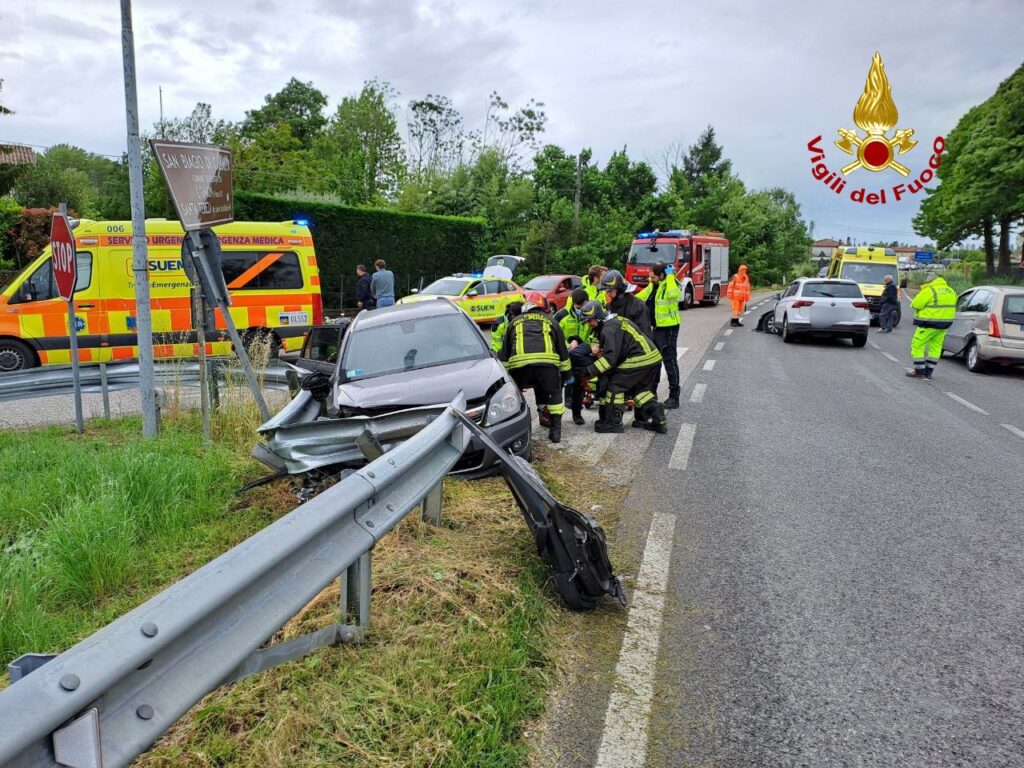 Alle 12:00, di martedì, i vigili del fuoco sono intervenuti lungo la SR 53 in Via Postumia Ovest a San Biagio di Callalta in provincia di Treviso per un incidente stradale tra tre auto: tre persone ferite.