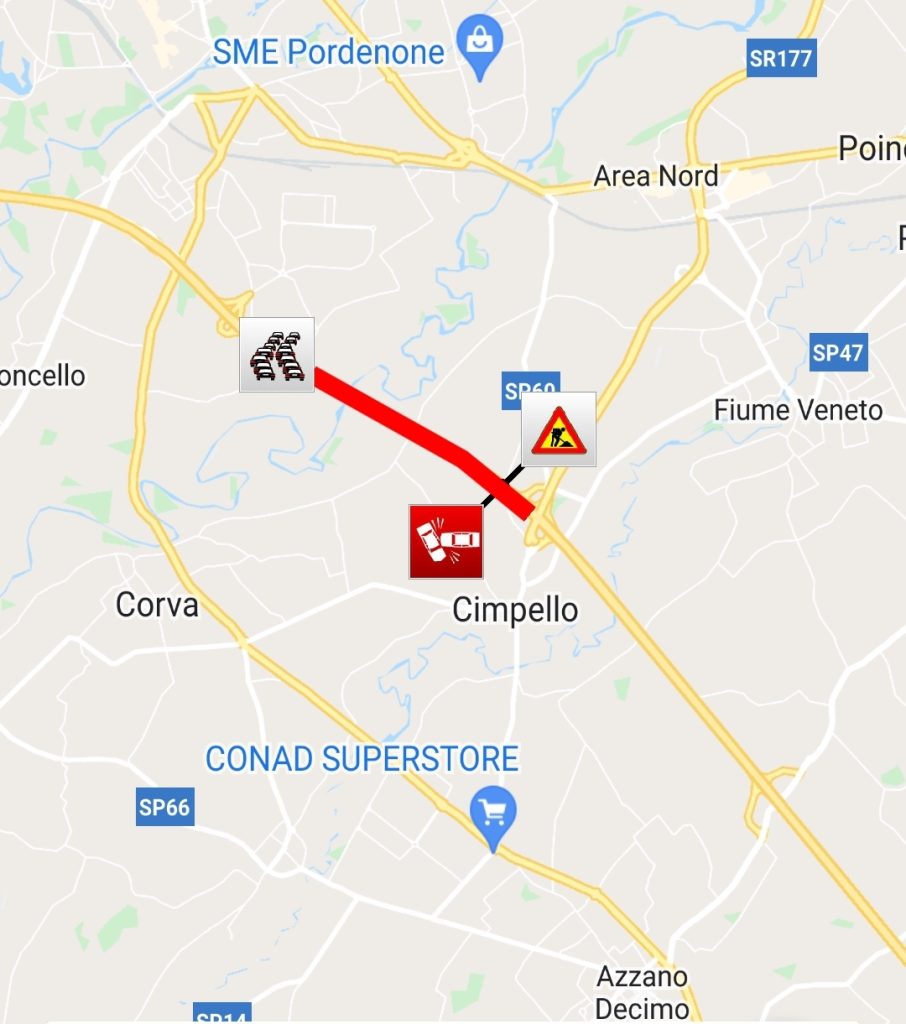 Incidente in A28 al km 17.3 tra Pordenone e Cimpello in direzione BIVIO A4.