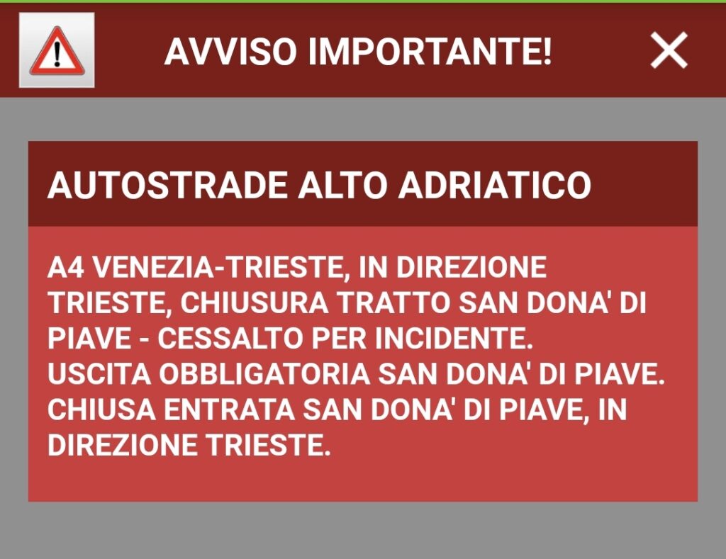 Autostrade Alto Adriatico ha attivato il reindirizzamento virtuale (percorso consigliato) della A27/A28 sia per chi proviene da Venezia, sia per chi proviene da Trieste.