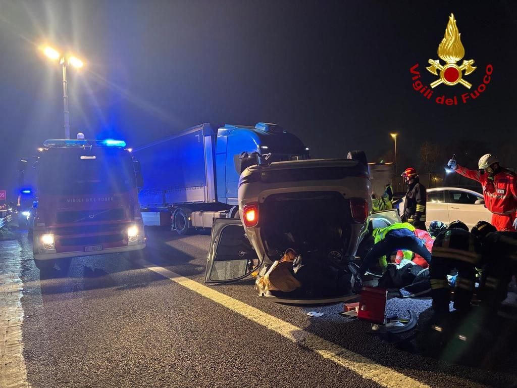 Incidente sull’A4, auto ribaltata: due feriti e tratto chiuso | FOTO