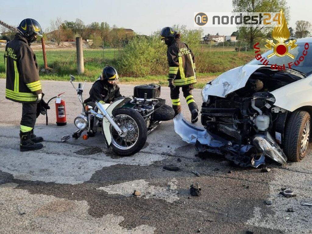 Nel tardo pomeriggio di oggi la prima partenza dei Vigili del Fuoco di Pordenone è intervenuta per un incidente stradale tra un auto e una moto, lungo Via Troiat ad Azzano Decimo (PN).