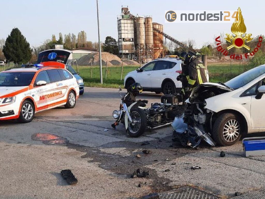 Il motociclista è stato soccorso dai vigili del fuoco e dal personale medico giunto con ambulanza e automedica da Pordenone.