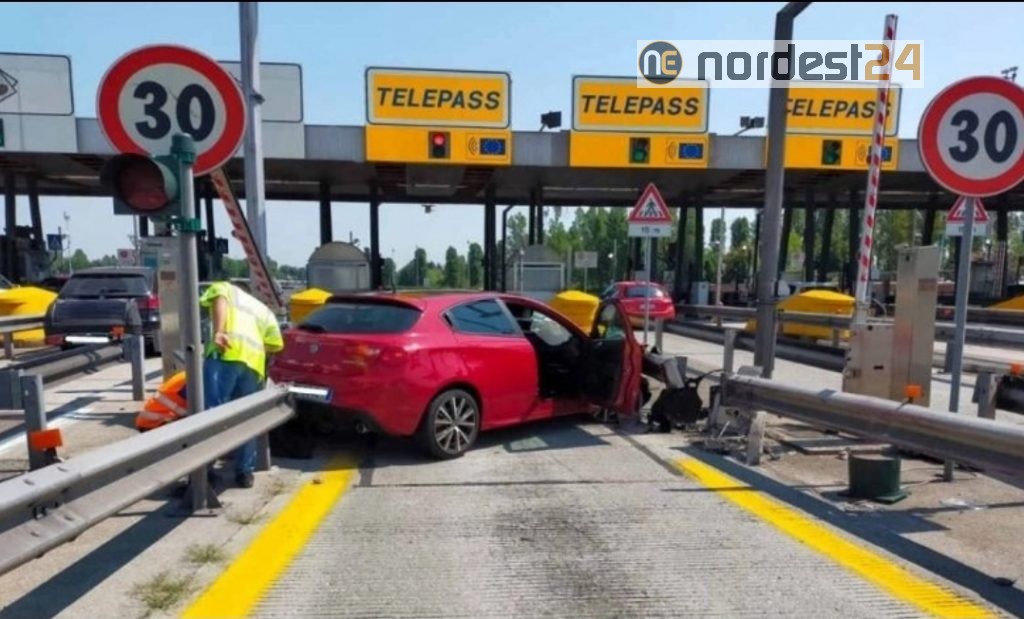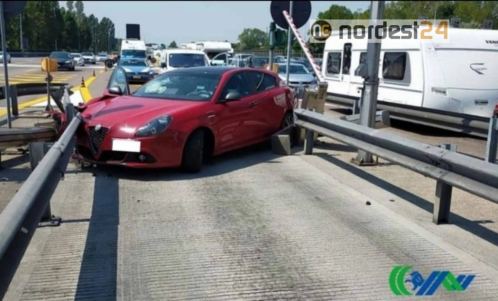 Incidente al casello di Mestre: Alfa urta l'ingresso Telepass e si incastra