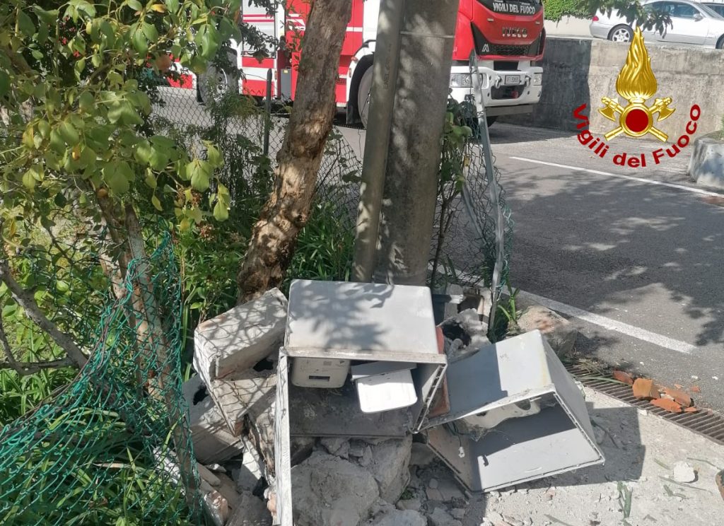 I pompieri arrivati dal locale distaccamento, hanno messo in sicurezza il mezzo, che ha anche divelto due contatori dell’energia elettrica. Il ferito è stato assistito dal personale sanitario del SUEM.