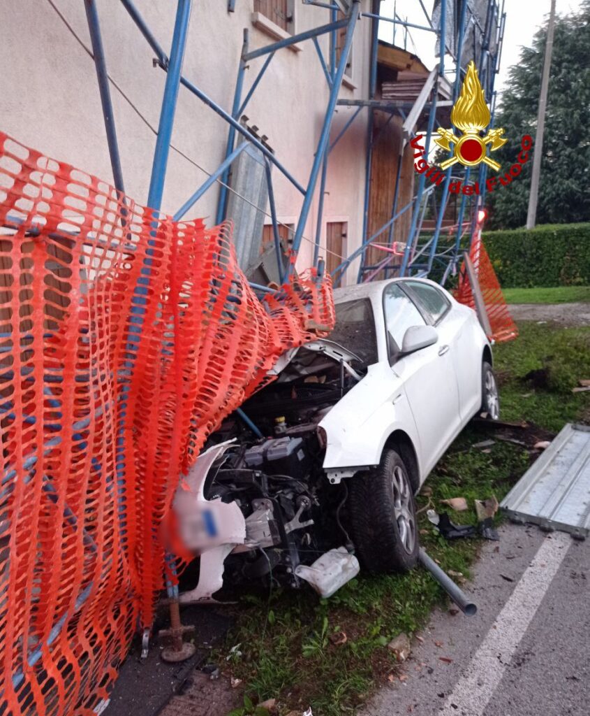 Il primo evento si è verificato intorno alle 6:30, all'incrocio tra via Muson e via Bassane. Un'Alfa Romeo Giulietta ha impattato violentemente contro un'impalcatura di un'abitazione privata, causando danni ingenti al cantiere in corso. I carabinieri del Nucleo Radiomobile della Compagnia di Castelfranco Veneto e i vigili del fuoco sono giunti rapidamente sul posto per occuparsi della rimozione del veicolo e della messa in sicurezza dell'area.