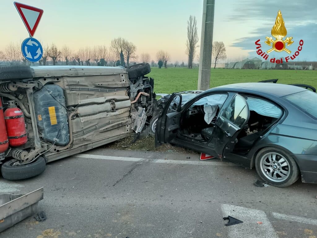 Incidente a San Piero in Gù tra due auto, due feriti soccorsi dai Vigili del Fuoco e trasportati in ospedale. Traffico deviato per i rilievi.